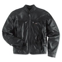 Harley-Davidson® Men's Leather Jacket, Black Shifter Model, Lightweight, Zipped Cuffs-Front-Chest Pockets and One Inside Pocket, plus Mandarin Collar, Venting, Hand Warmer Pockets, Bar & Shield Metal Badge on Front, Embossed Bar & Shield Logo on Back, Padded Elbows, 98136-03VM