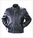 Men's Black Cowhide Leather Motorcycle Jacket with Euro Collar and Zip-out lining.