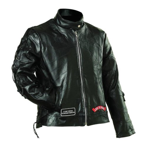 This jacket consists of hundreds of individual pieces of hand selected Buffalo Leather that are stitched together to create a contouring fit. This stitching process takes several hours of additional production time but the end result is a jacket that is well worth it! Features multiple patches, zip front, Nehru collar, and leather laces on sleeves and waste for an adjustable fit.