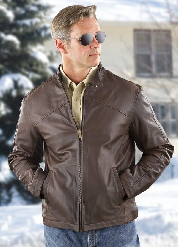Sumptuous! Luxury starts with this excellent Excelled Goat Leather Scooter Jacket. PRICED LESS! Own this cleanly styled garment! Whether you ride a scooter or not, this rich outerwear always makes a distinctive impression. It possesses the attitude you'd expect from a look made iconic by Brando and Dean. Clean and sleek, it's a Leather Jacket you can wear with jeans, khakis or dress pants. Our special buying power tailors the usual price with a nip-tuck discount. Nab a King Kong-size bargain right here! Must-have: Lush, plush, genuine goat leather shell; 100% quilted nylon lining is smooth for easy on and off; 100% polyester fill insulation blocks out the icy cold and raw wind; Dual hand pockets; Snap cuffs; 2 interior pockets (1 patch, 1 inset). Professionally leather clean only. Imported. State Size. Top-quality threads are here. Order Now! Excelled Goat Leather Scooter Jacket, Brown