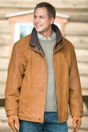 Resilient, sturdy and ruggedly handsome -- the Men's Jackson has it all. Made of premium French goatskin leather, it's the kind of leather jacket that just gets better with wear. A soft, insulating cashmere/wool lining offers lightweight warmth without the bulk. A heavy-duty zip front with 3-snap storm-flap keeps the weather out, along with adjustable snap/straps at cuffs. For added wind protection, the Jackson features a stylish double collar and double front plackets. Calfskin trim on the collar and storm-flap adds a smooth finish, and the 2 hand-warmer pockets keep your hands comfortable in all kinds of weather. 1 inside slip pocket, 1 inside snap pocket. 30 ½" long. Made in the U.S.A.