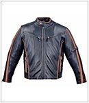 Men's Vented Black/Brown Leather Motorcycle Jacket with Zip-out liner and sleeve pocket.