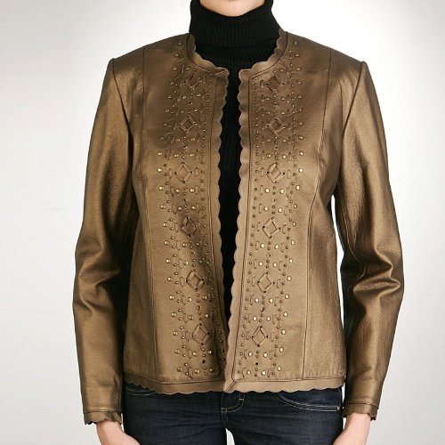Scallop-edge jacket in striking gold metallic leather for a luxurious appeal. * No closure * Polyester lining * 100% leather