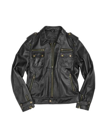Forzieri's sleek, fully lined motorcycle jacket in beautiful vegetable tanned leather features cool brass hardware, numerous pockets and a fitted back with adjustable strap detail. Made in Italy