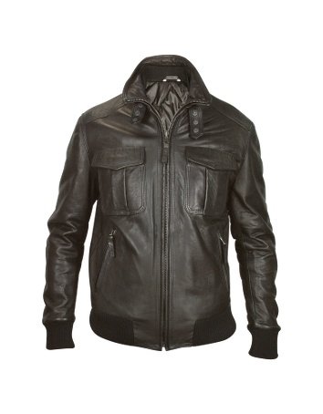 Forzieri's dashing black leather bomber jacket features handsome pleated chest pockets, a snap tab collar, edgy elbow patches and a luxurious quilted lining. Made in Italy
