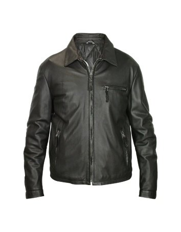 Forzieri's black calf leather jacket lends a refined casual feel with a classic spread collar, warm quilted lining, three easy-access outer pockets adorned with pull tabs and a slim, streamlined shape. Made in Italy