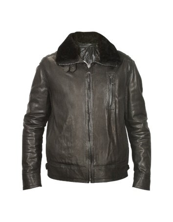 Forzieri's luxe aviator jacket in soft black leather features a fold-over collar with plush, detachable shearling lining and buckle tab closure, adjustable buckled waist and quilted lining. Made in Italy