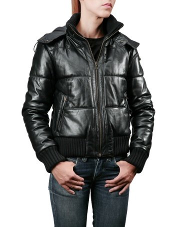 The classic bomber by Forzieri is updated in top quality leather with a slightly puffy but flattering shape featuring zip pockets and detachable zip hood. Made in Italy