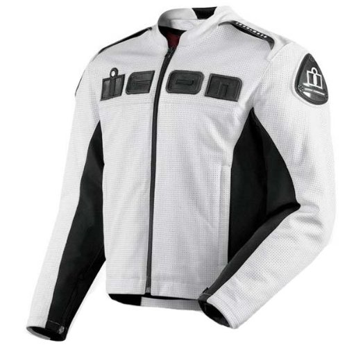Icon Mens Accelerant Perforated Leather Motorcycle Jacket White S