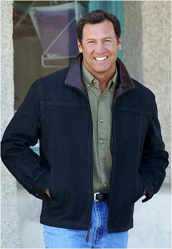 This great comfortable jacket is made from Kildare Goat and has a zip front to keep out the cold. It features two inside breast pockets, 100% acrylic body lining. The sleeve lining is 52% Acetate and 48% cotton. It has slit pockets, adjustable snap cuffs, two-tone style with brown colored leather at cuffs and collar. Made in the U.S.A.