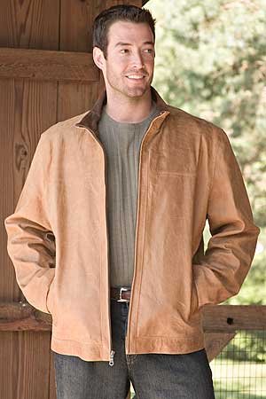 Ruggedly attractive, durable, and remarkably versatile, this handsome Zip Front Jacket offers a rare combination of great design, superb craftsmanship and superior quality materials. Made of soft lambskin leather with a naturally shrunk look, the jacket features a versatile stand-up, fold-down collar, which opens to reveal a contrasting brown leather trim. Features a sturdy zip front closure with inside brown leather trim and slit pockets with unique design details. 1 inside breast pocket on each side. Acetate/rayon lining. 28" long. Imported.