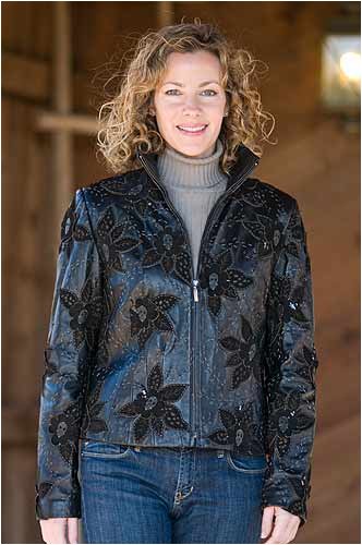 Bring a little edge to any outfit with our to-die-for Flor De Muerto Leather Jacket by Stern Rockwell. Inspired by the rich cultural traditions and art of Mexico, it's made of Italian lamb nappa and hand-stitched with sequins, die-cut flowers and skull appliqués. Trim and tailored, this chic leather jacket has a zip front and a standup collar for extra comfort in chilly weather. 21" long. Made in Turkey.