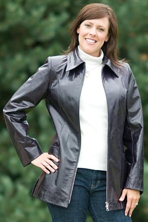 Like your trusty little black dress, our Naomi Leather Jacket is always in style. Pull it on, zip it up and discover the smooth, flattering look and feel of Napa leather. With a rich, lustrous finish that's almost iridescent, this coat is sure to shine in any setting. Classic style features include a 2-way zipper, 2 patch pockets and a shirt collar. Fully lined. 21" long. Made in Canada.