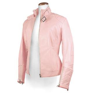 Forzieri's biker jacket has the perfect combination of flirty fun and toughness in pale pink Nappa leather with patchwork lining and sleek motorcycle design. A tailored fit with adjustable buckle detail at back and collar and zippered quilted sleeves make this an all-around favorite. Made in Italy