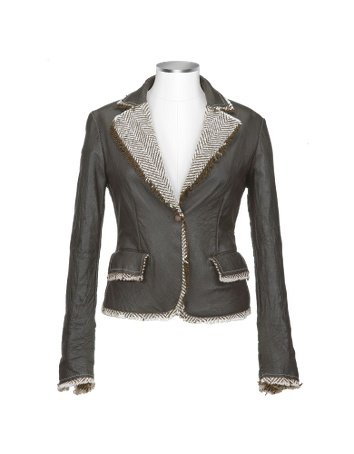 Keep stylishly warm in this chic supple Italian leather blazer jacket with unfinished wool ends for a distressed, edgy look that makes any woman look fashionably put together. Made in Italy.