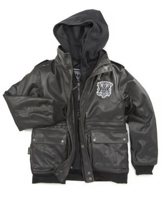 Even on a Big Wheel, he'll look like a bona fide biker in this faux-leather Akademiks jacket.