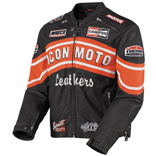 Icon Mens Vintage Flattrack Leather Motorcycle Jacket Black 4XL