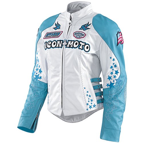 Icon Womens Bombshell Gogo Leather Motorcycle Jacket Blue 2XL